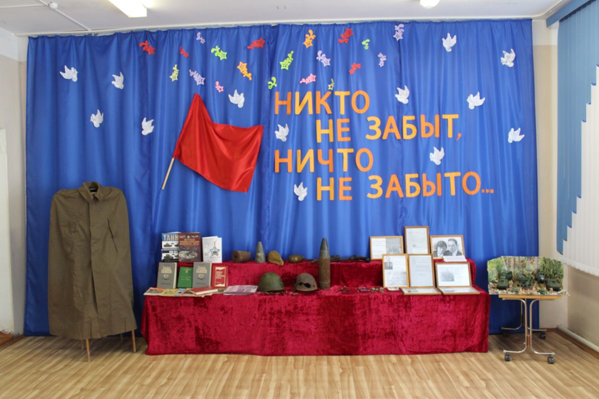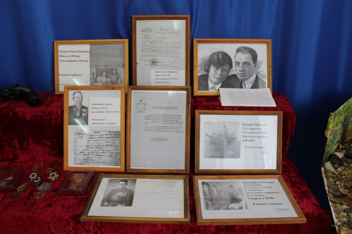 Праздничным мероприятиям предшествовала большая работа,силами родителей и педагогов был оформлен музей войны.Семья Климовых предоставила гильзы к выстрелу,деталь от военного самолета,каску,семья Борцовых предоставила Орден Великой Отечественной войны, военные фотографии,семья Гороховых расссказала о своих родственниках героях войны,так же предоставили медаль "За Отвагу", Орден Великой Отечественной войны.Так же были предоставлены письма с фронта,извещения,военные фотографии,настоящая плащ-палатка,офицерский наградной кортик. Организованы выставки рисунков и поделок.